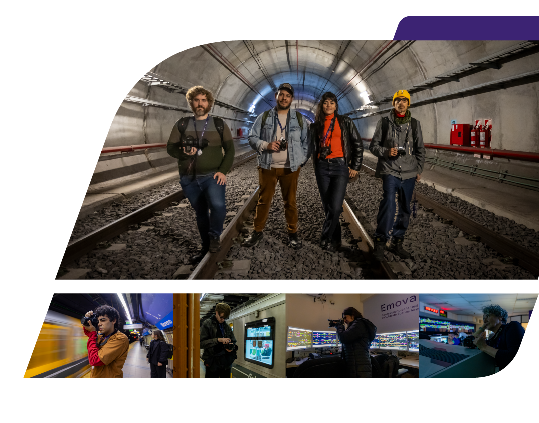 Estas fotografías son el resultado de una convocatoria que realizamos desde Emova a fotógrafos profesionales y aficionados, en la que fueron seleccionados once artistas. Recorrieron túneles, las distintas estaciones de la Red de Subte, y el Taller Nazca, una de las 12 instalaciones donde realizamos el mantenimiento de la flota. En esta exhibición, presentamos una selección de sus fotografías. Cada una de las muestras, en cada línea, abrirá un diálogo diferente, con otras imágenes y contextos.